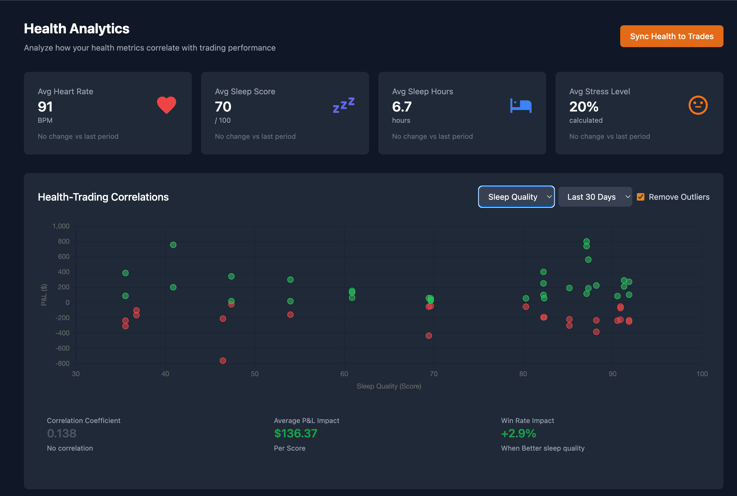 Now supporting heart rate and sleep tracking to correlate with trading performance.