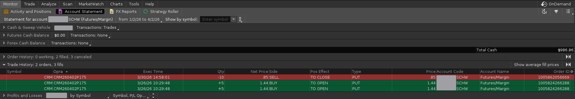 Schwab export - Spotty when it comes to options. Just an ‘also ran’ basically